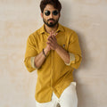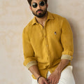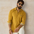 Mustard Brushed Flannel Shirt with Chest Embroidery Shirt