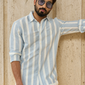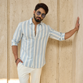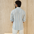 Step into effortless style with our Coastal Breeze 100% Linen Striped Shirt. This shirt features a refreshing white and blue striped pattern, perfect for capturing the essence of coastal living. Made from 100% premium linen, it offers unparalleled breathability and softness, making it an ideal choice for warm weather.